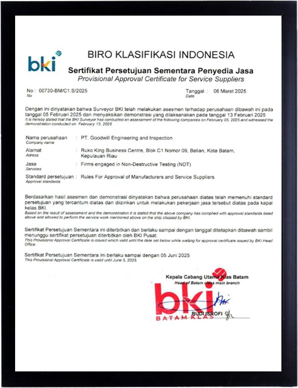 BKI APPROVAL OF SERVICE SUPPLIER CERTIFICATE NO: 00730-BM/C1.S/2025