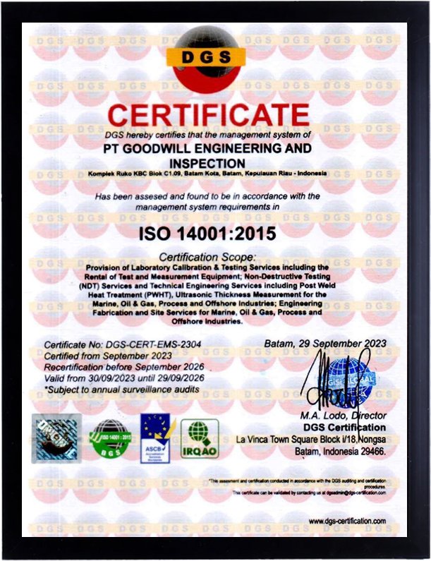 ISO 14001:2015 CERTIFICATE NO: DGS-CERT-EMS-2304 ENVIRONMENTAL MANAGEMENT SYSTEM