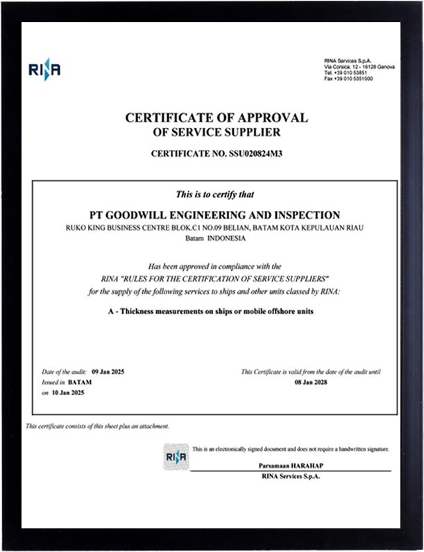 RINA CERTIFICATE OF APPROVAL A-THICKNESS MEASUREMENTS ON SHIPS OR MOBILE OFFSHORE UNITS