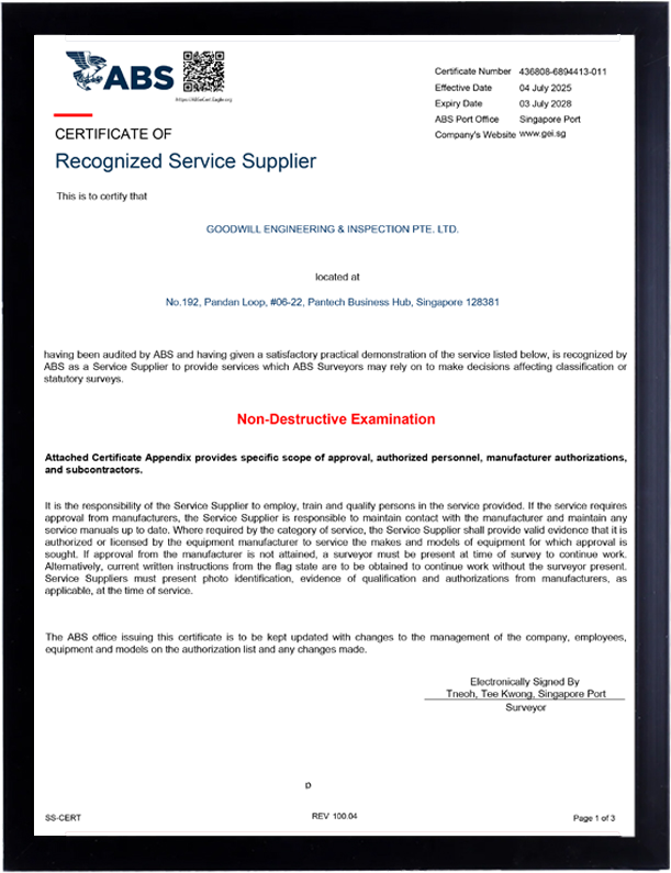 ABS CERTIFICATE NDT